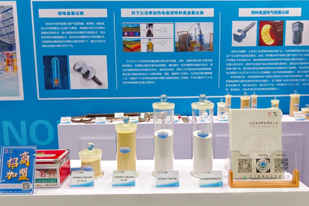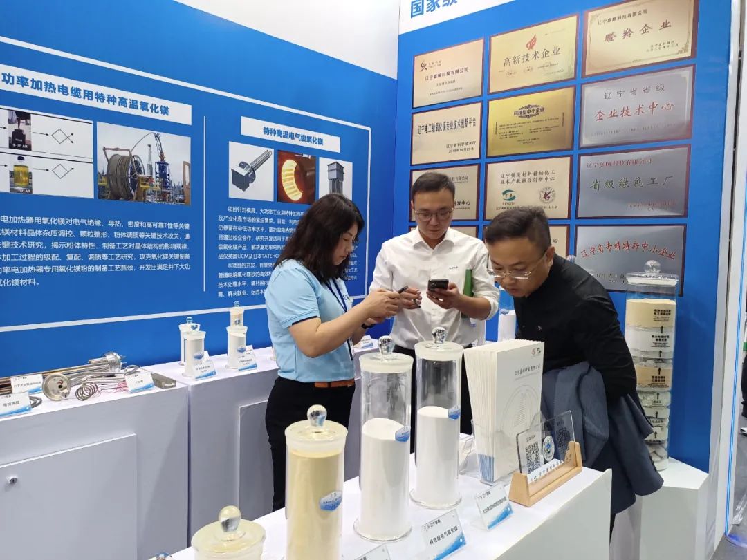 其中,展出的井下大功率加熱器用鶴壁特種高溫電工級(jí)鶴壁氧化鎂是我公司與中石油合作研發(fā)項(xiàng)目產(chǎn)品。其具有極高的絕緣、導(dǎo)熱性能,且能夠在特定的條件下成功通過(guò)測(cè)試,攻克鶴壁氧化鎂關(guān)鍵制備工藝,突破井下大功率電加熱器專用氧化鎂粉的制備工藝瓶頸,從而實(shí)現(xiàn)進(jìn)口替代。